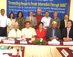 The CSAS in cooperation with the Sri Lanka based Regional Centre for strategic Studies and The Netherlands based Global Partnership for the Prevention of Armed Conflict organized a 2-day regional roundtable on 'Promoting People to People Interaction Through SAARC' at the Radisson Hotel, Kathmandu on July 15-16, 2010. Mr. Kunda Dixit, Editor of the Nepali Times gave the keynote address. Mr. Darynell Rodriguez, Nishchal N. Pandey and Prof. Amal Jayawardane from the GPPAC, CSAS and the RCSS spoke at the inaugural session. Participants included Brig. Shahedul Anam Khan (Bangladesh), Prof. Nighat Khan (Pakistan), Dr. Paula Banerjee (India), Ms. Gayathri Nannayakara (Sri Lanka), along with Ambassadors Prof. Mohan P. Lohani, Dr. Bishnu Hari Nepal and Dr. Shambhu Ram Simkhada, Mr. Arjun Karki, Mr. Chiran J. Thapa and Ms. Saloni Singh from Nepal. Participants also had interactive discussions at the UN Regional Centre for Peace and Disarmament for the Asia and the Pacific and at the SAARC Secretariat.